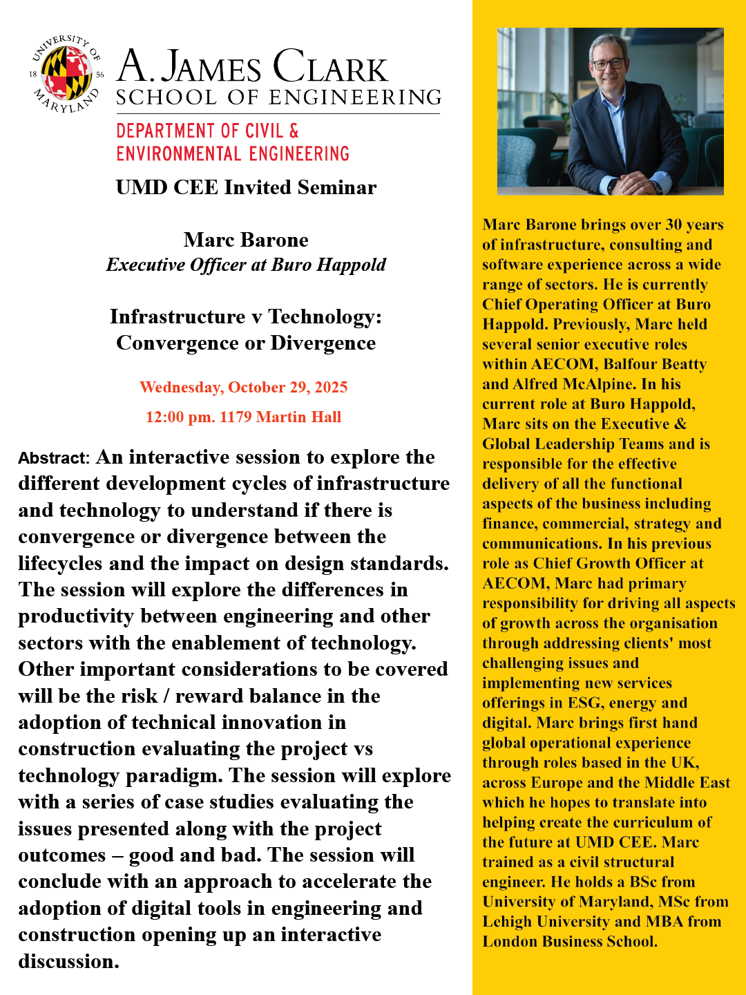 An interactive session designed to explore the different development cycles of infrastructure and technology in order to understand if there is convergence or divergence between the lifecycles and the impact on design standards. The session will explore the differences in productivity between engineering and other sectors with the enablement of technology. Other important considerations to be covered will be the risk/reward balance in the adoption of technical innovation in construction evaluating the project vs. technology paradigm. The session will explore these topics with a series of case studies evaluating the issues presented along with the project outcomes, good and bad. The session will conclude with an approach to accelerate the adoption of digital tools in engineering and construction, opening up a constructive discussion.