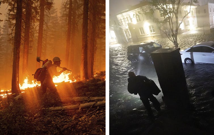In a year tied for the warmest on record globally, the U.S. was hit with costly hurricanes, wildfires, storms and drought. AP Photo/Noah Berger and Gerald Herbert A.R. Siders, University of Delaware; Allison Reilly, University of Maryland, and Deb Niemeier, University of Maryland